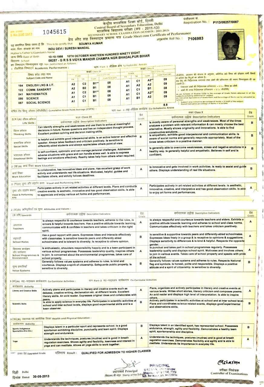 | Exam | Full Marks | Pass Marks | Marks Obtained |