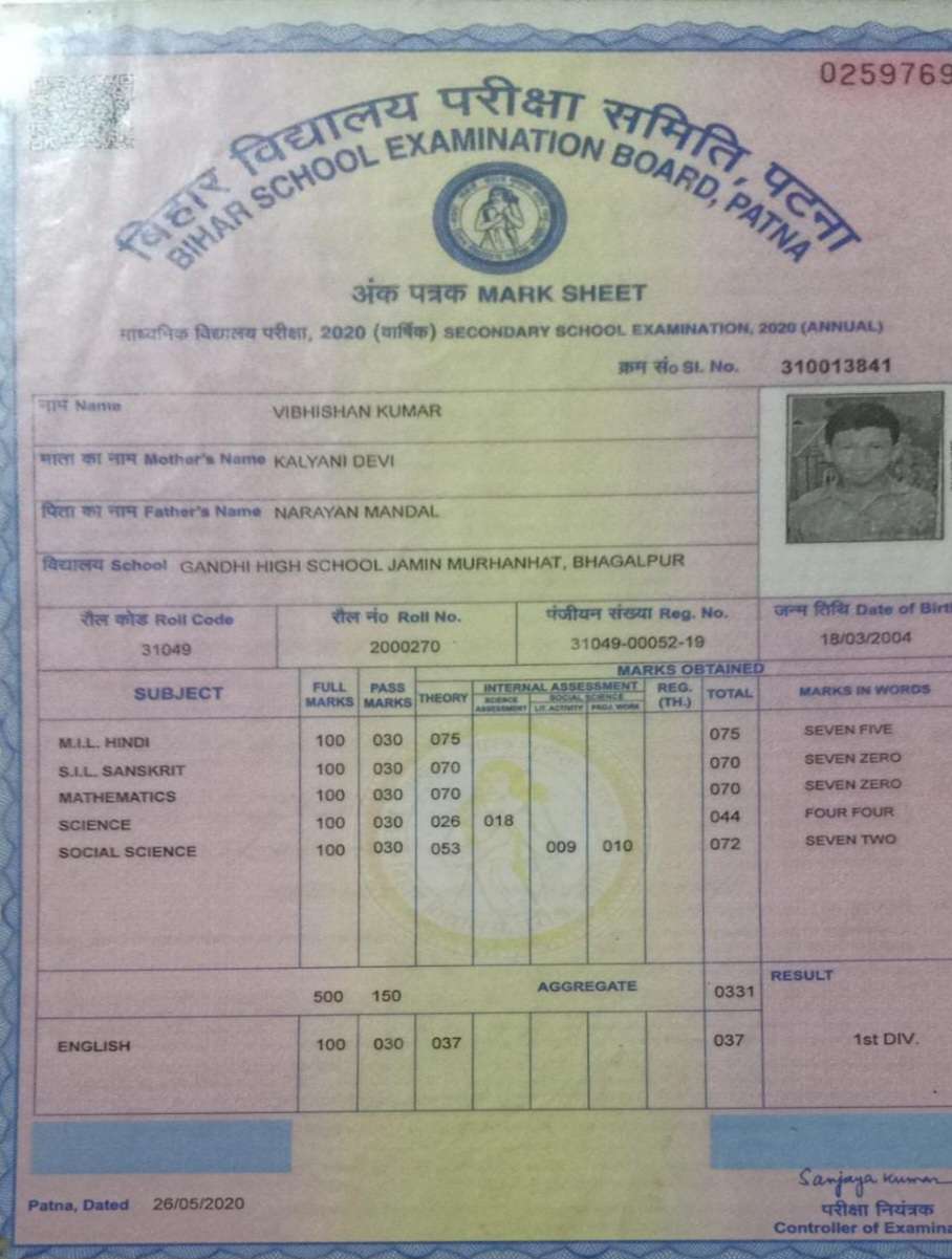 | Exam | Full Marks | Pass Marks | Marks Obtained |