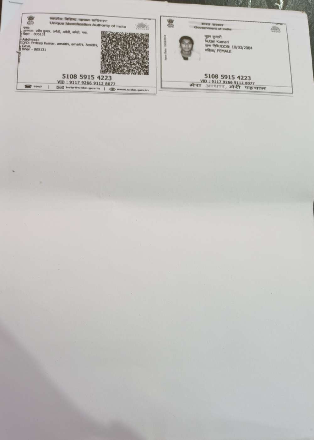 | : | Indira Kumari | |