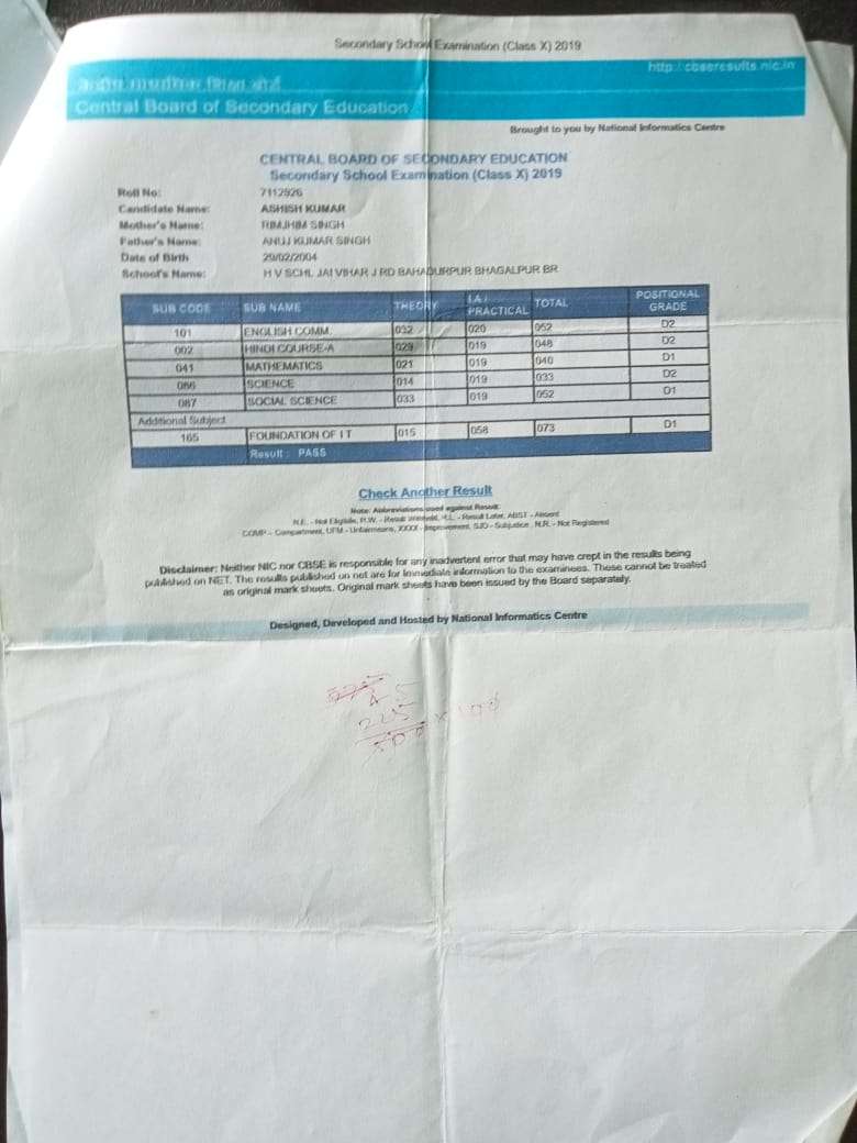 | Exam | Full Marks | Pass Marks | Marks Obtained |