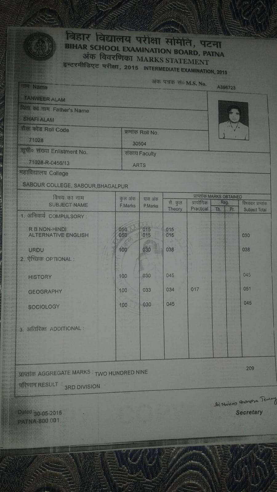 | Exam | Full Marks | Pass Marks | Marks Obtained |