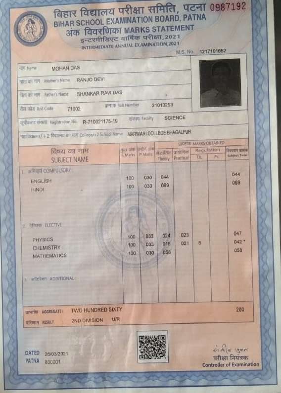 | Exam | Full Marks | Pass Marks | Marks Obtained |