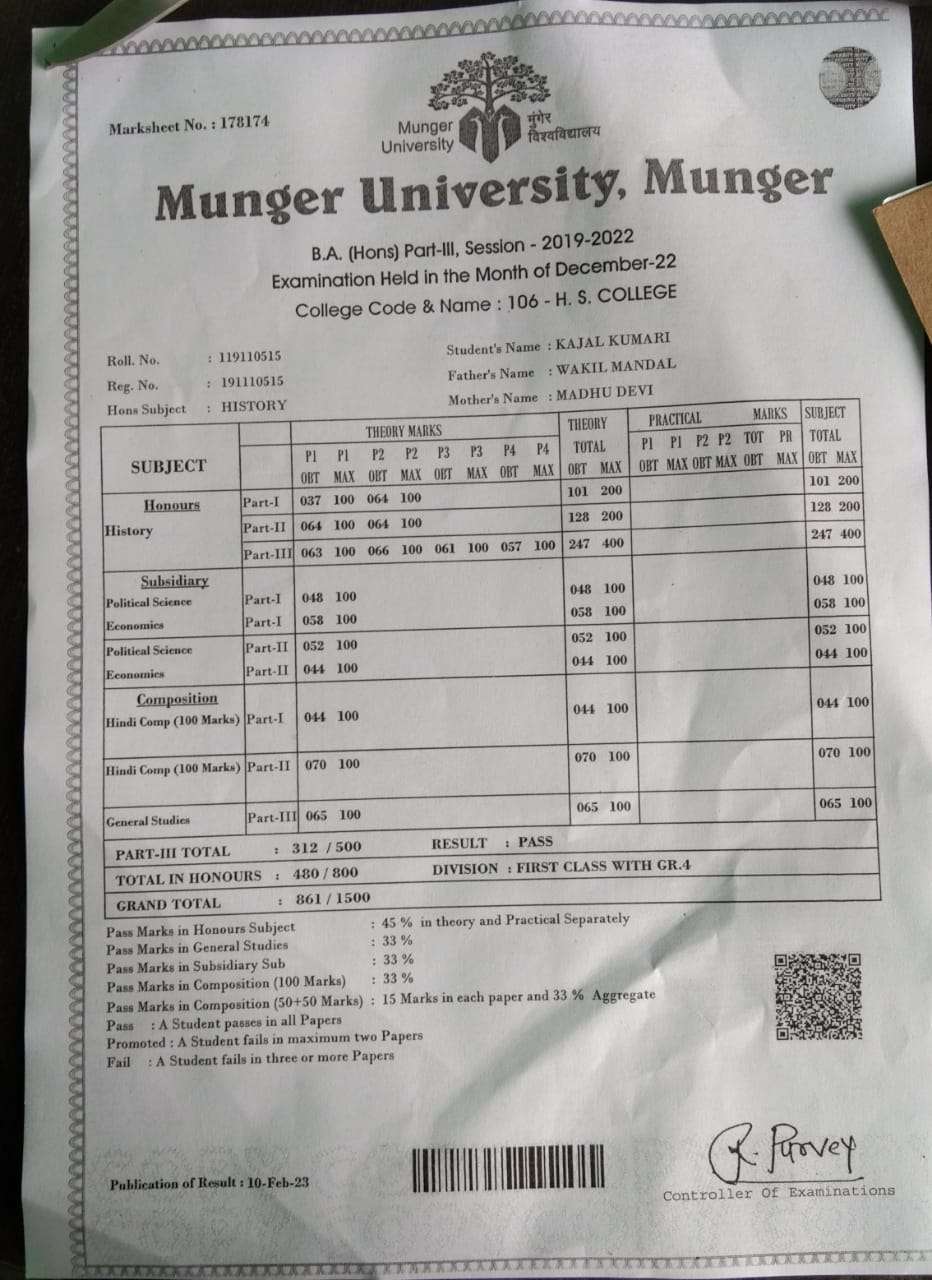 | Exam | Full Marks | Pass Marks | Marks Obtained |