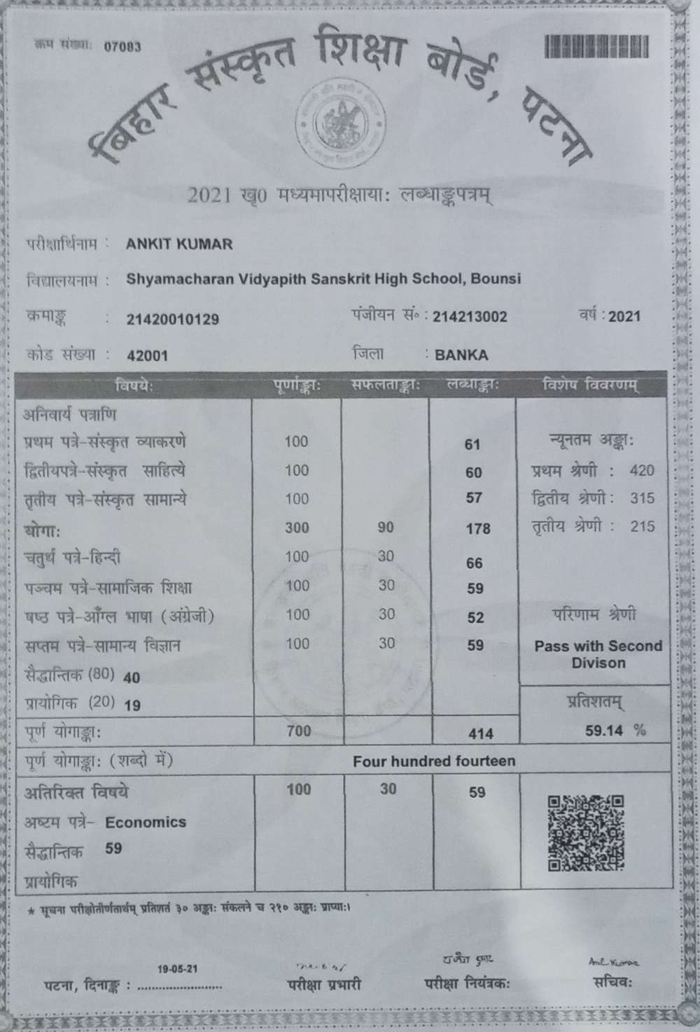 | Grade : A | Percentage : 81.50 % | MS. No. : 25831 | Date of Issue : 30-Aug-2023 |