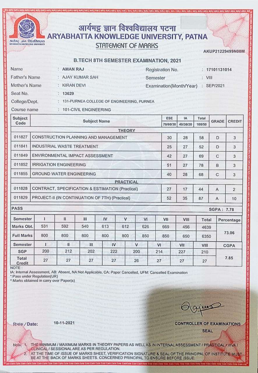 | Exam | Full Marks | Pass Marks | Marks Obtained |