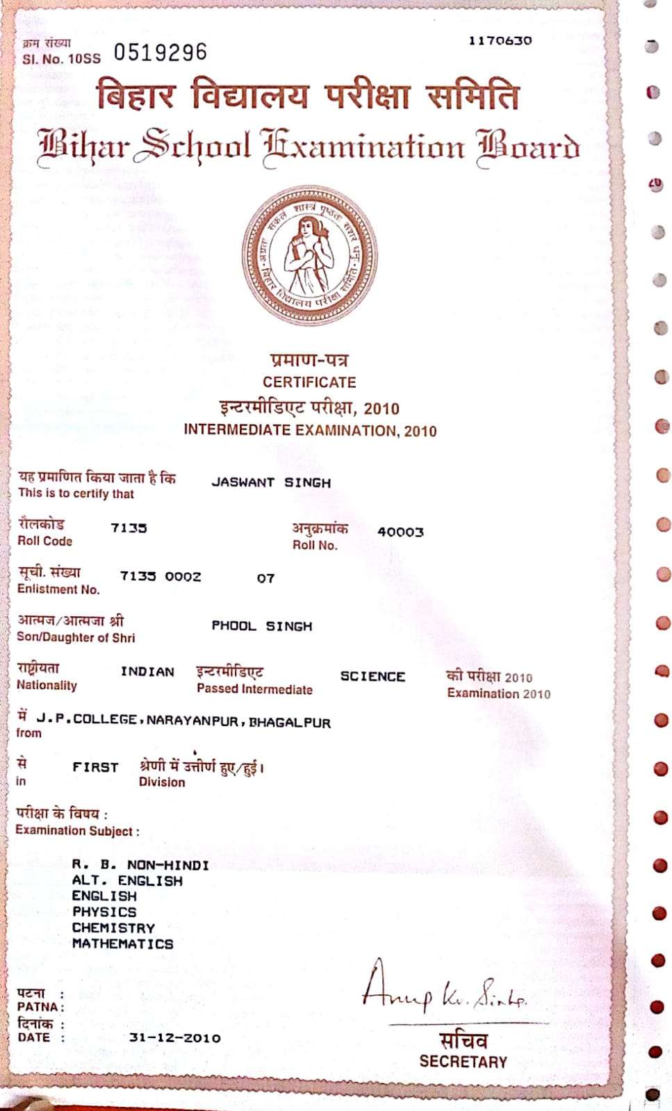 | : | Phool Singh | |