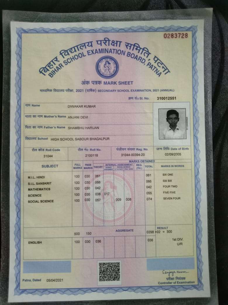 | Exam | Full Marks | Pass Marks | Marks Obtained |