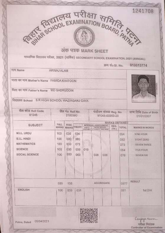 | Exam | Full Marks | Pass Marks | Marks Obtained |