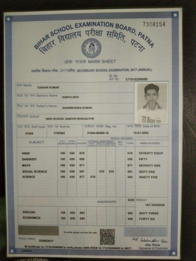 | Exam | Full Marks | Pass Marks | Marks Obtained |