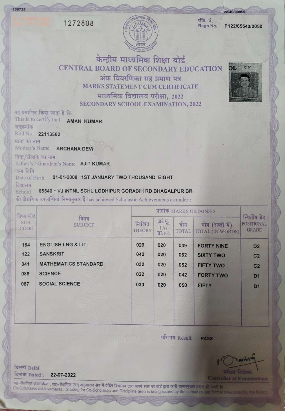 | Exam | Full Marks | Pass Marks | Marks Obtained |