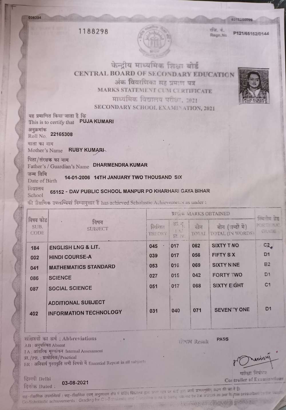 | Grade : A+ | Percentage : 85.50 % | MS. No. : 36264 | Date of Issue : 20-Dec-2023 |