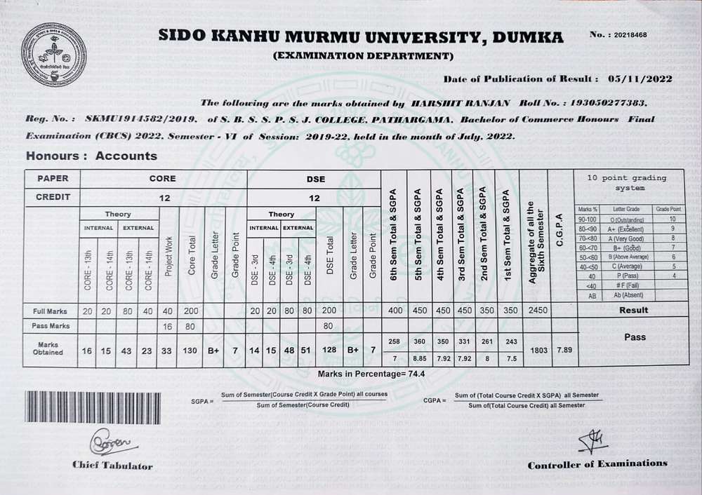 | Grade : A | Percentage : 80.25 % | MS. No. : 24214 | Date of Issue : 28-Apr-2023 |