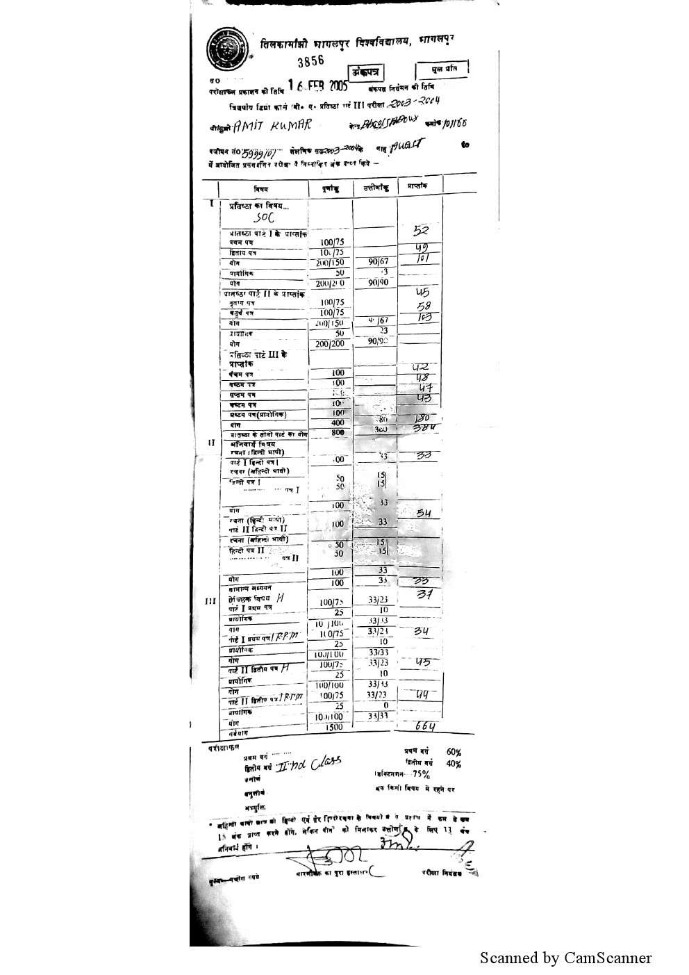 | Exam | Full Marks | Pass Marks | Marks Obtained |