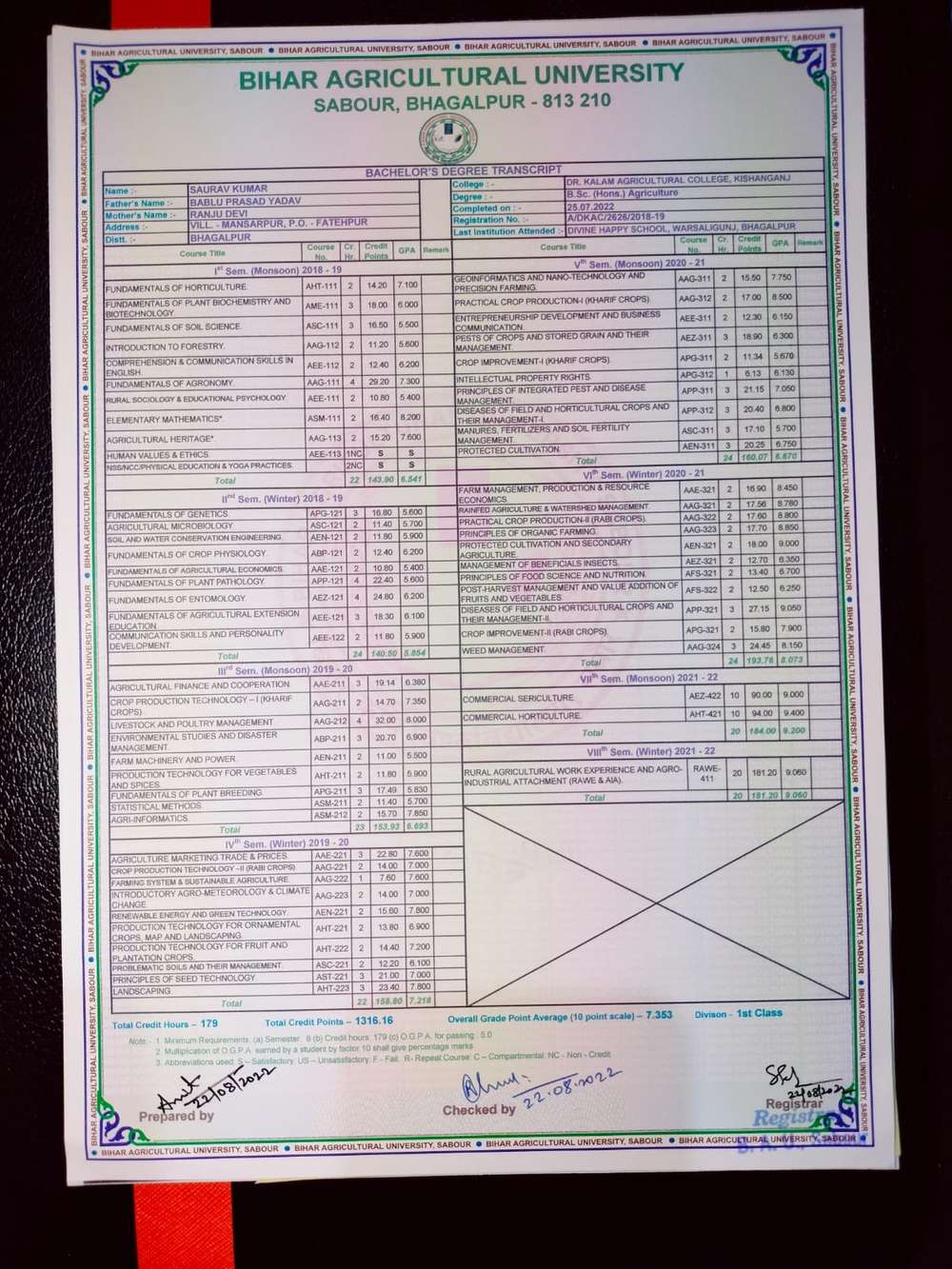 | Grade : A | Percentage : 81.50 % | MS. No. : 24262 | Date of Issue : 28-Apr-2023 |