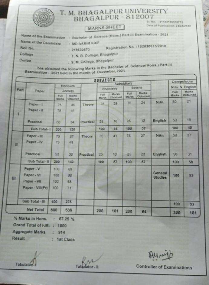 | Exam | Full Marks | Pass Marks | Marks Obtained |