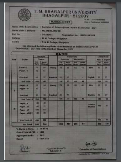 | Exam | Full Marks | Pass Marks | Marks Obtained |