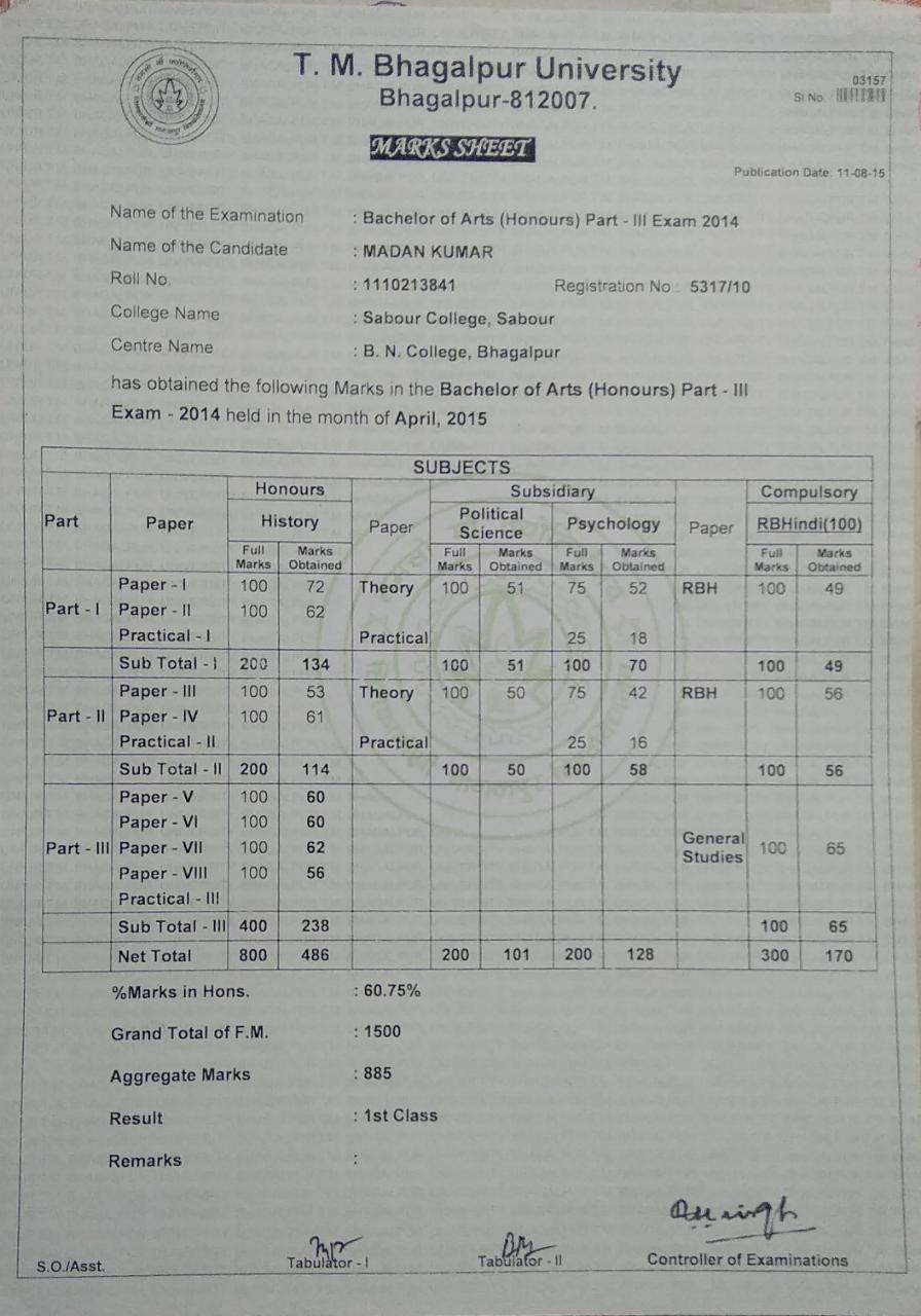 | Exam | Full Marks | Pass Marks | Marks Obtained |