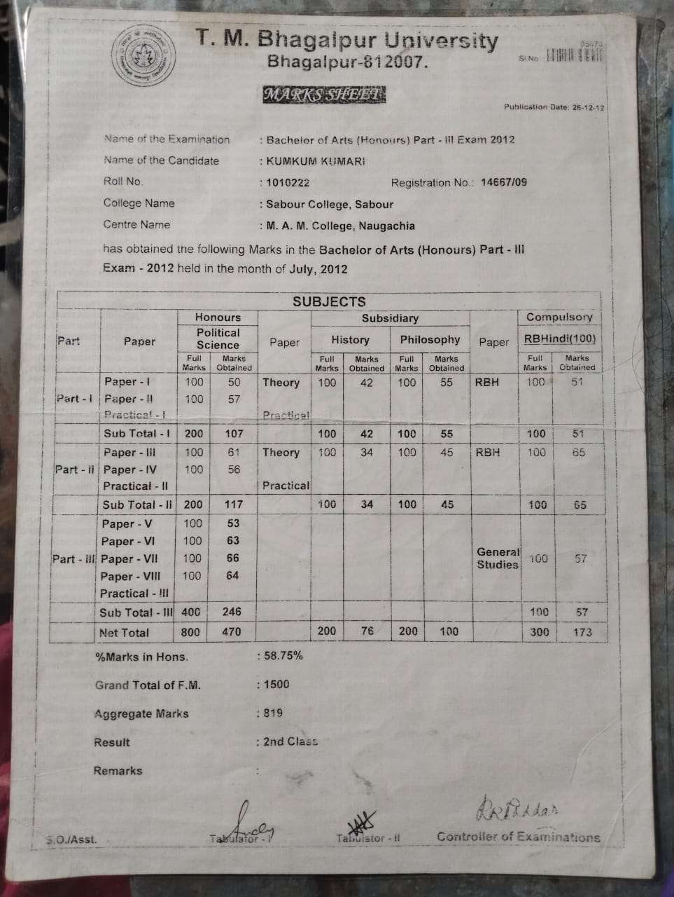 | Exam | Full Marks | Pass Marks | Marks Obtained |