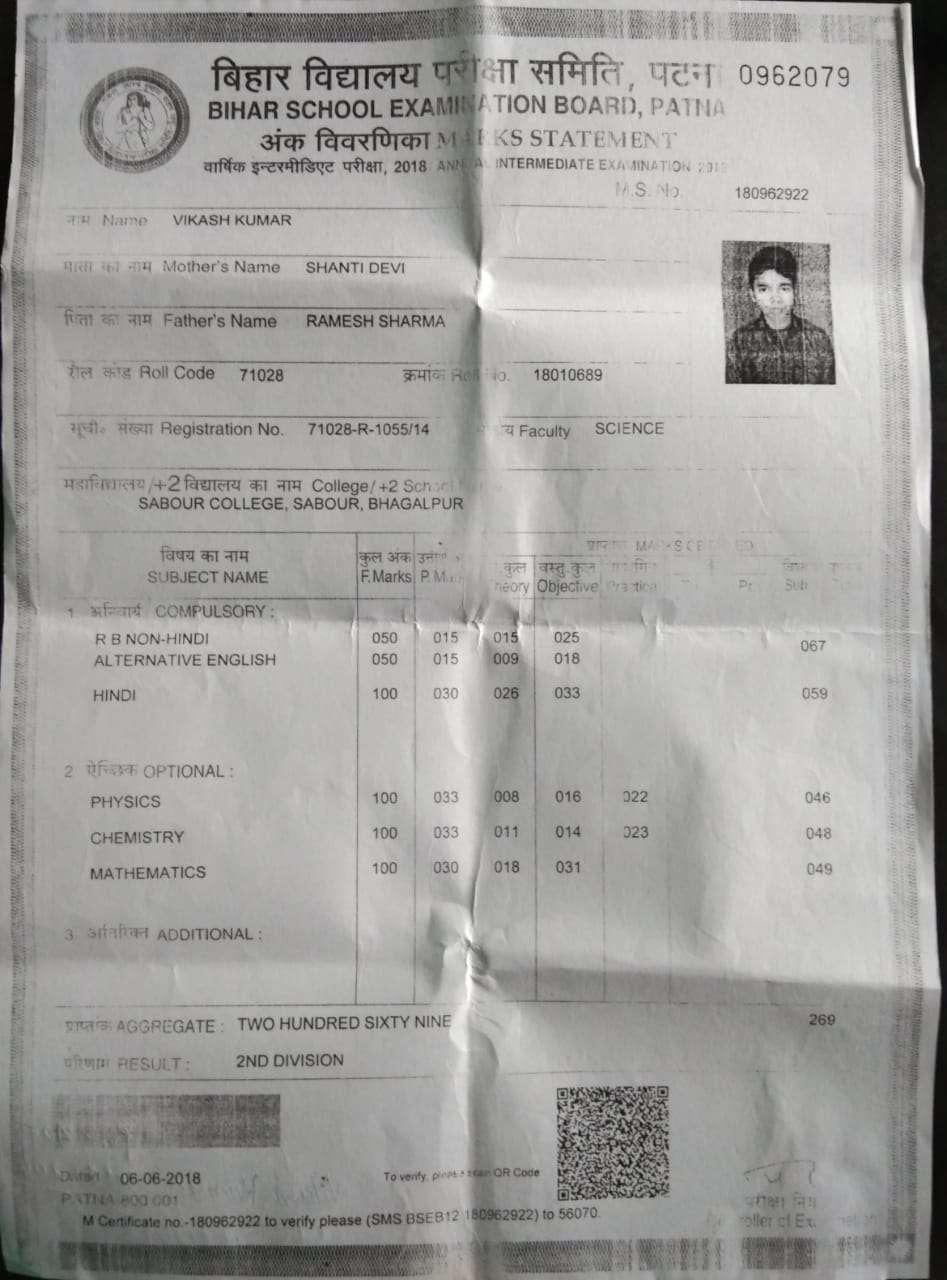 | Exam | Full Marks | Pass Marks | Marks Obtained |