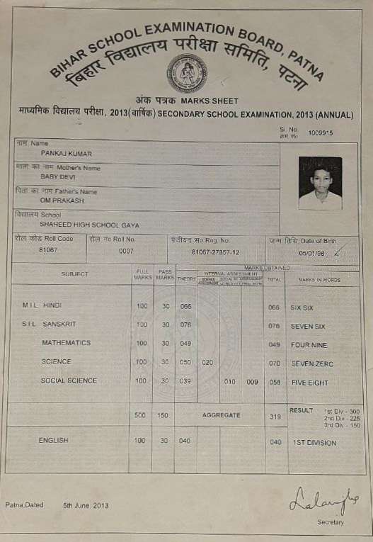 | Exam | Full Marks | Pass Marks | Marks Obtained |
