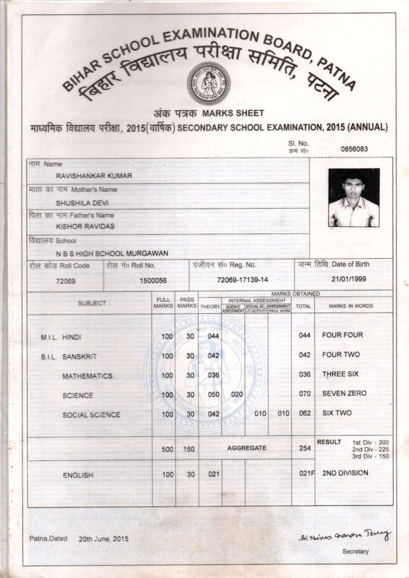| Exam | Full Marks | Pass Marks | Marks Obtained |