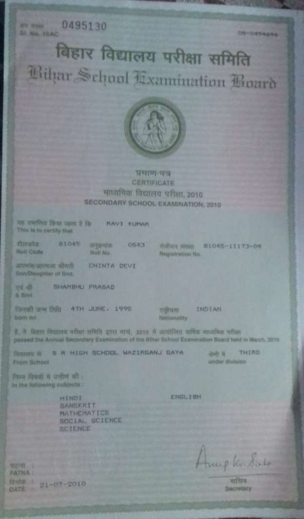 | Exam | Full Marks | Pass Marks | Marks Obtained |