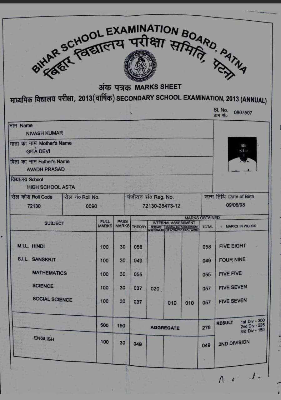 | Exam | Full Marks | Pass Marks | Marks Obtained |