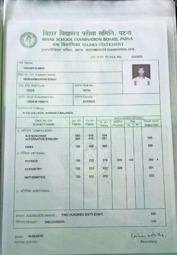 | Exam | Full Marks | Pass Marks | Marks Obtained |