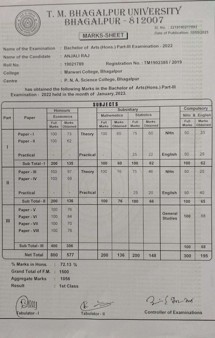 | Exam | Full Marks | Pass Marks | Marks Obtained |