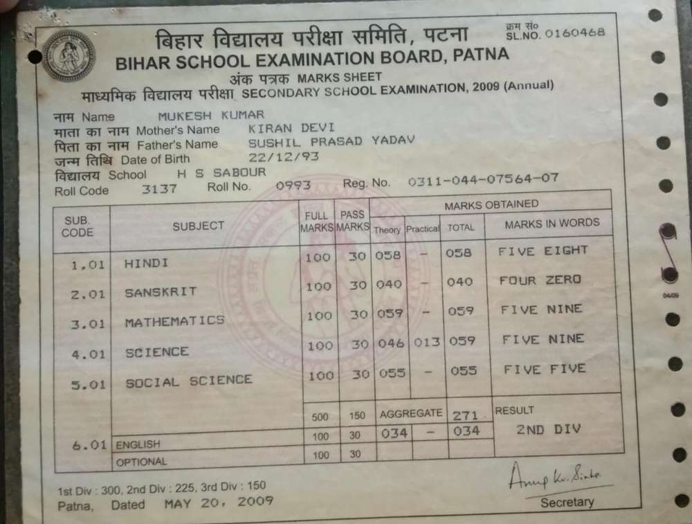 | Exam | Full Marks | Pass Marks | Marks Obtained |