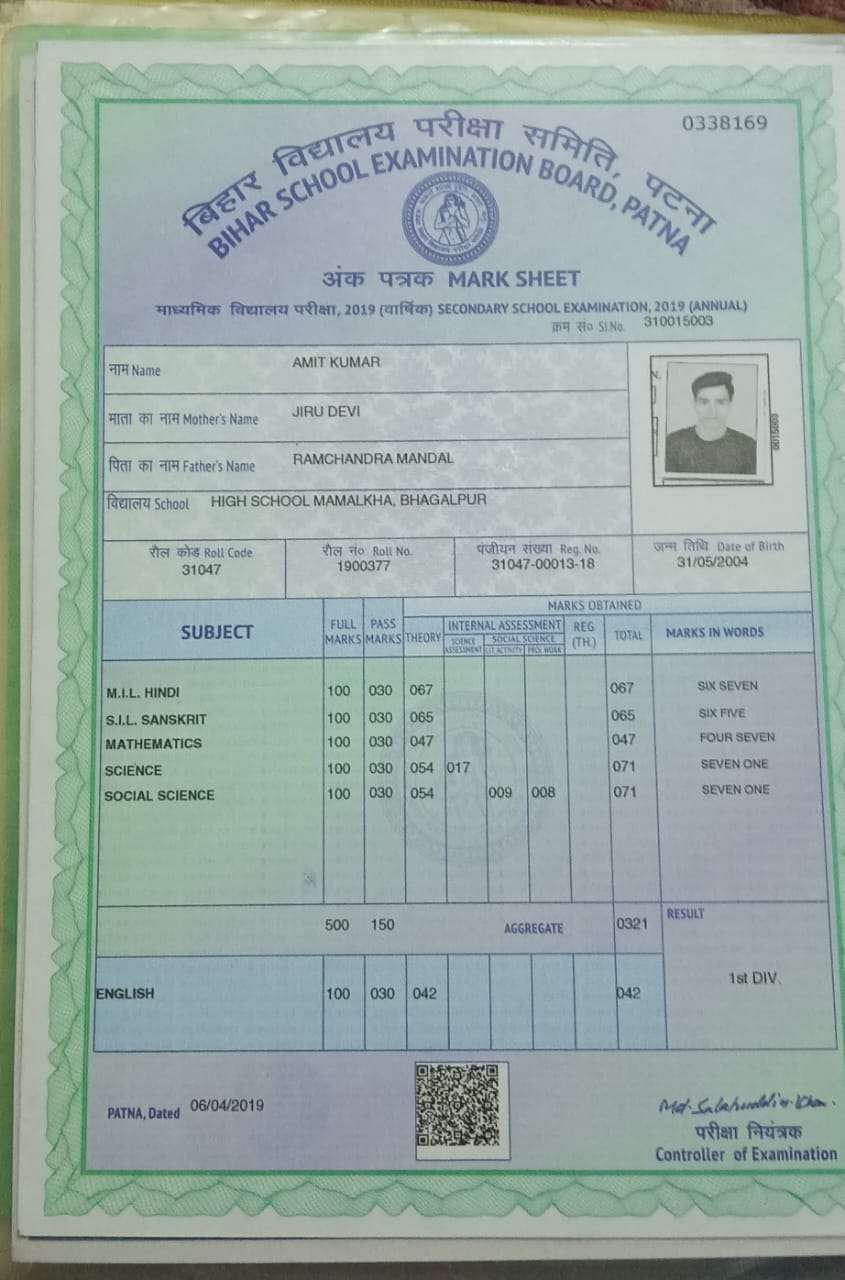 | Exam | Full Marks | Pass Marks | Marks Obtained |