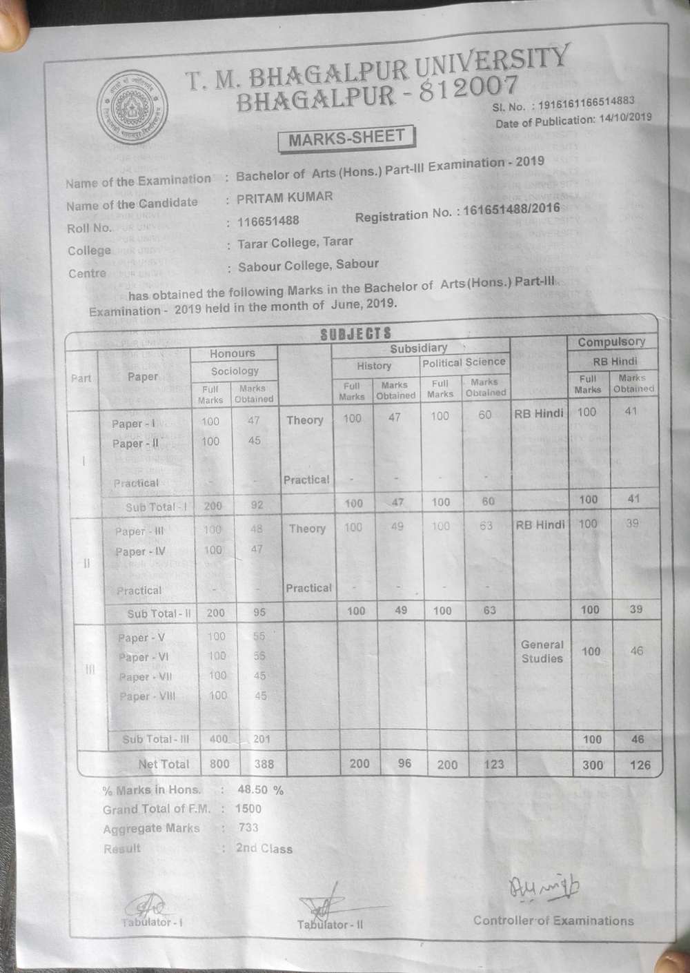 | Exam | Full Marks | Pass Marks | Marks Obtained |