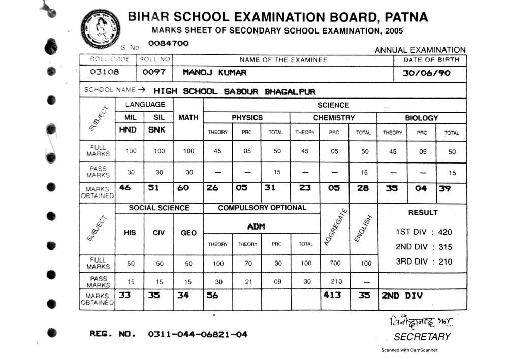 | Exam | Full Marks | Pass Marks | Marks Obtained |