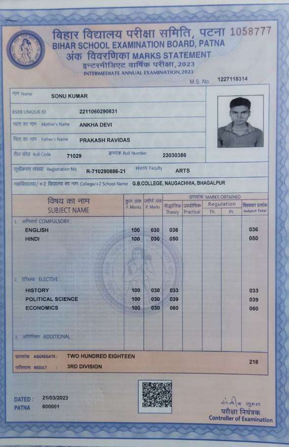 | Exam | Full Marks | Pass Marks | Marks Obtained |
