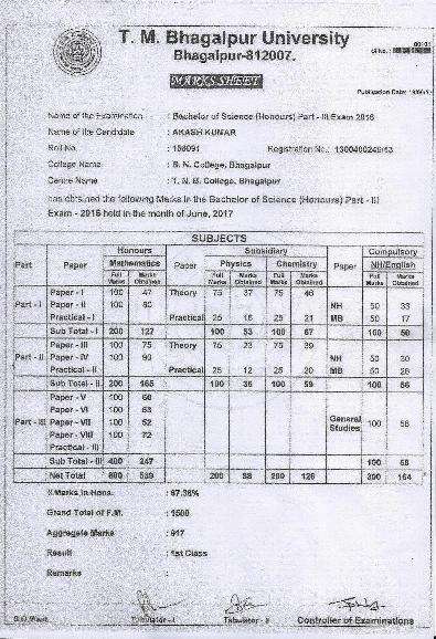 | Exam | Full Marks | Pass Marks | Marks Obtained |