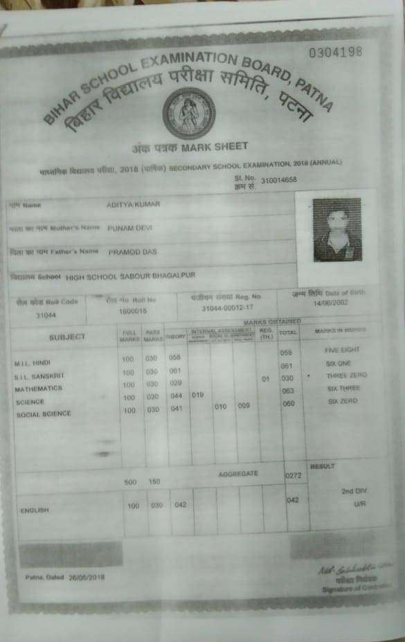 | Exam | Full Marks | Pass Marks | Marks Obtained |