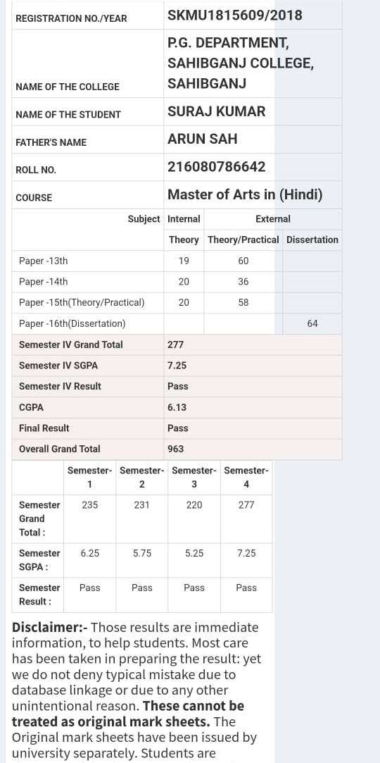 | Exam | Full Marks | Pass Marks | Marks Obtained |