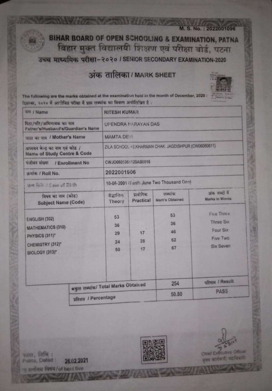 | Exam | Full Marks | Pass Marks | Marks Obtained |