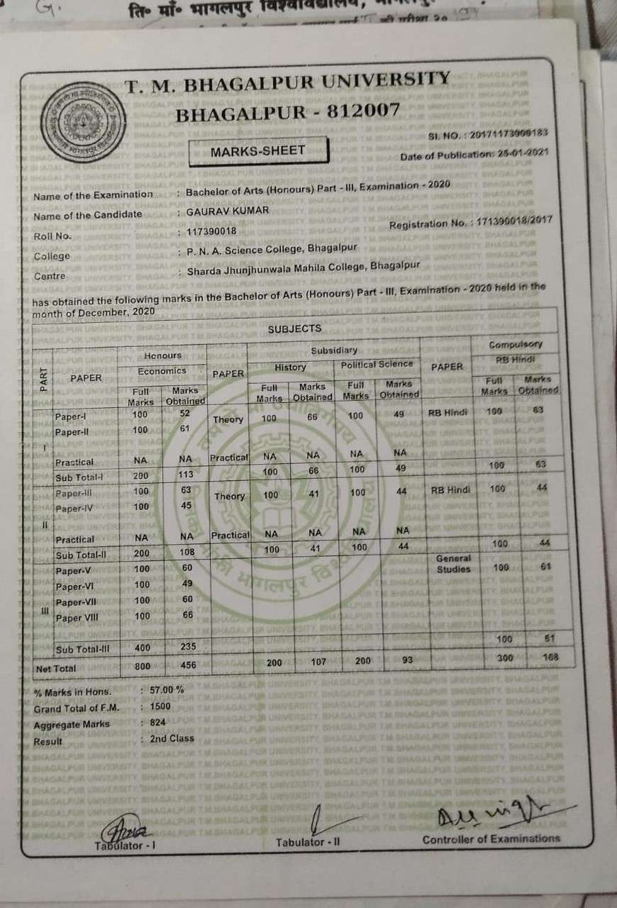 | Exam | Full Marks | Pass Marks | Marks Obtained |