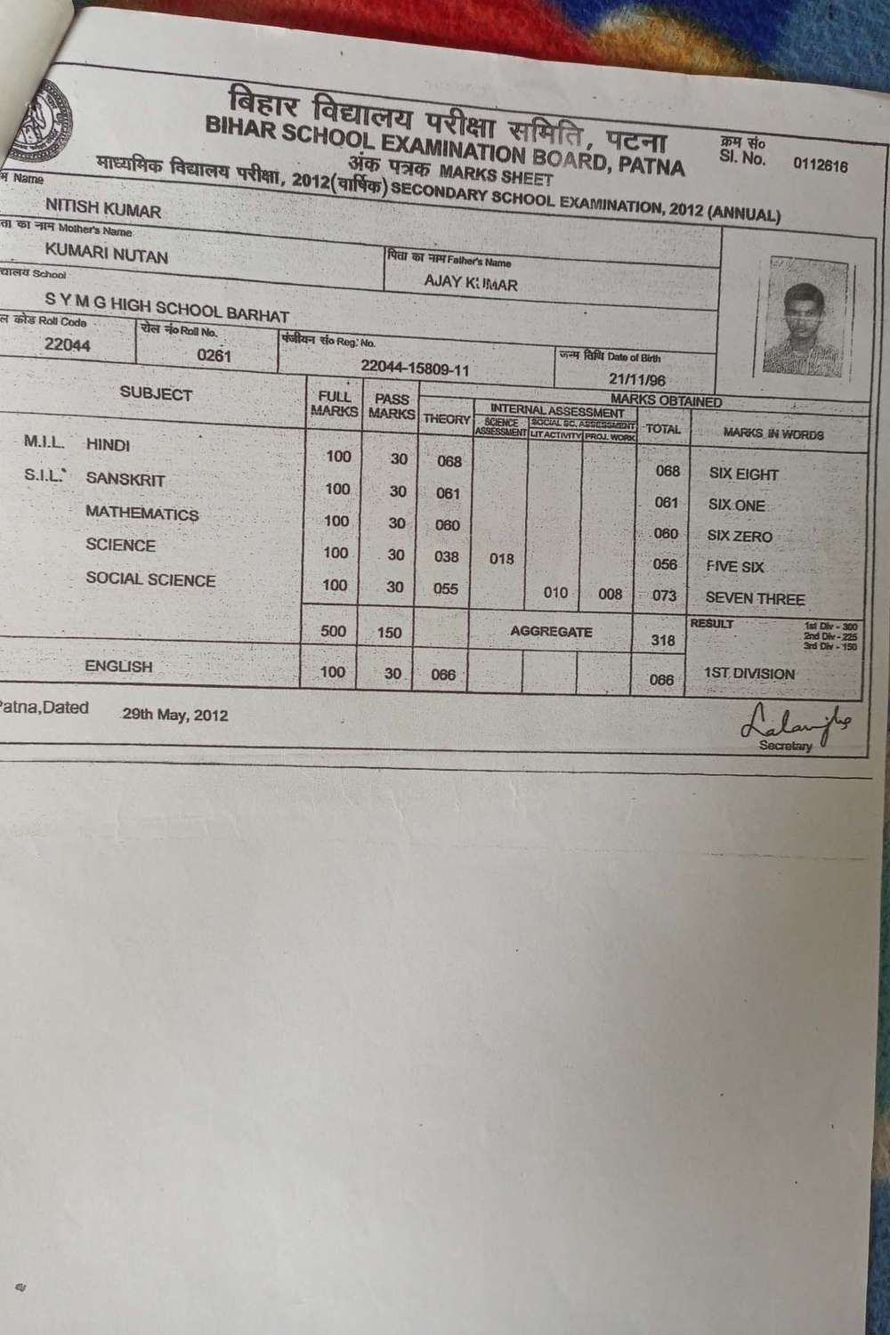 | Exam | Full Marks | Pass Marks | Marks Obtained |