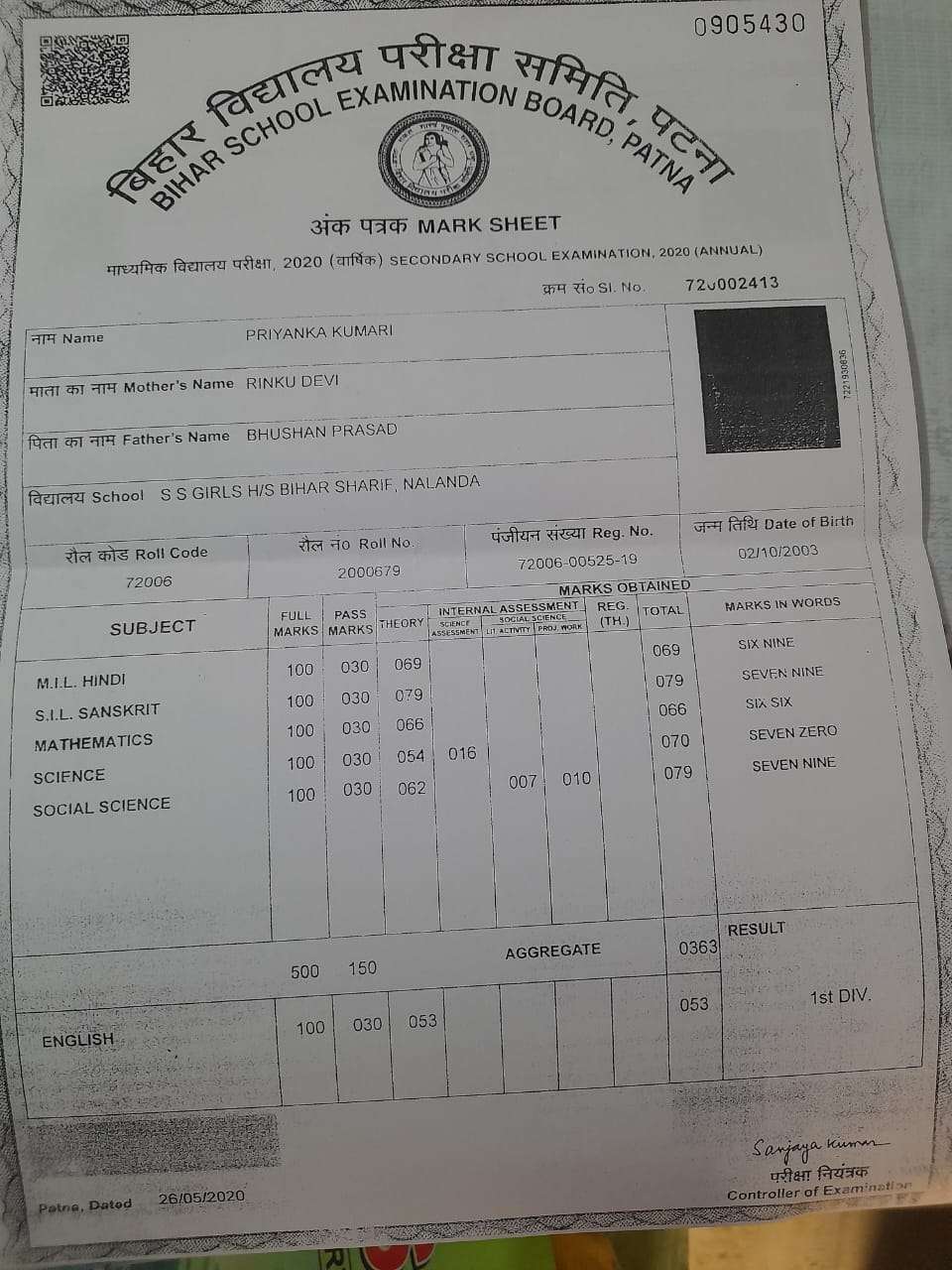 | Exam | Full Marks | Pass Marks | Marks Obtained |