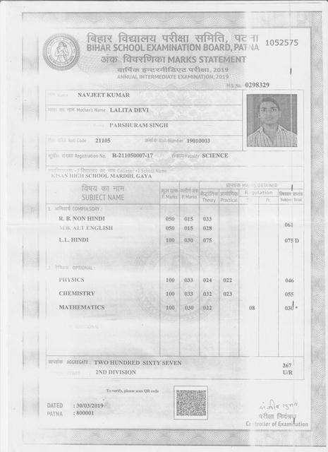 | Exam | Full Marks | Pass Marks | Marks Obtained |
