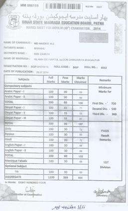 | Exam | Full Marks | Pass Marks | Marks Obtained |
