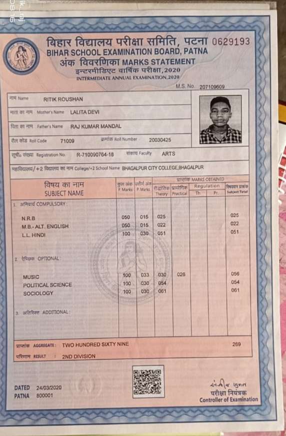 | Exam | Full Marks | Pass Marks | Marks Obtained |