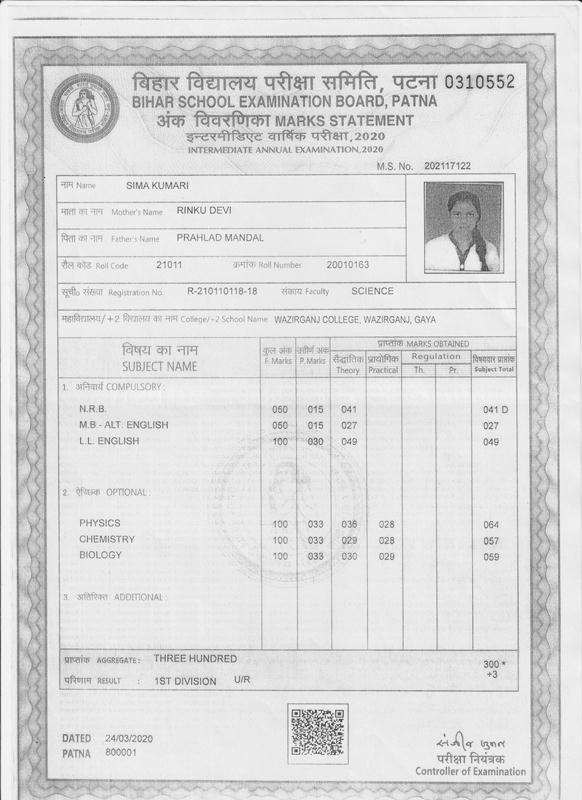 | Exam | Full Marks | Pass Marks | Marks Obtained |