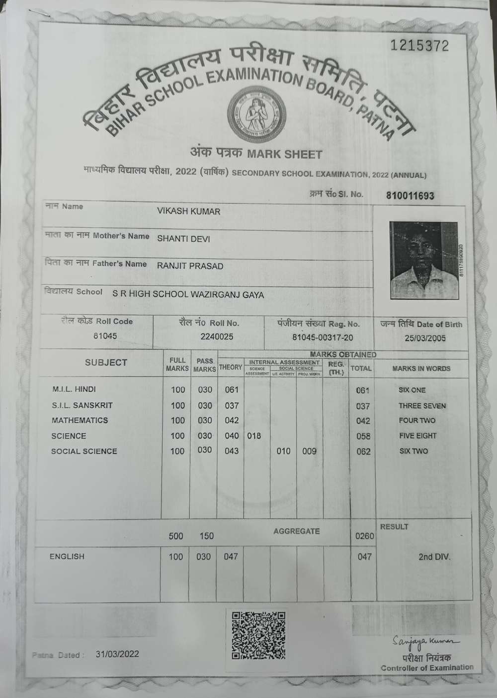 | Grade : A+ | Percentage : 85.50 % | MS. No. : 38719 | Date of Issue : 07-Apr-2025 |