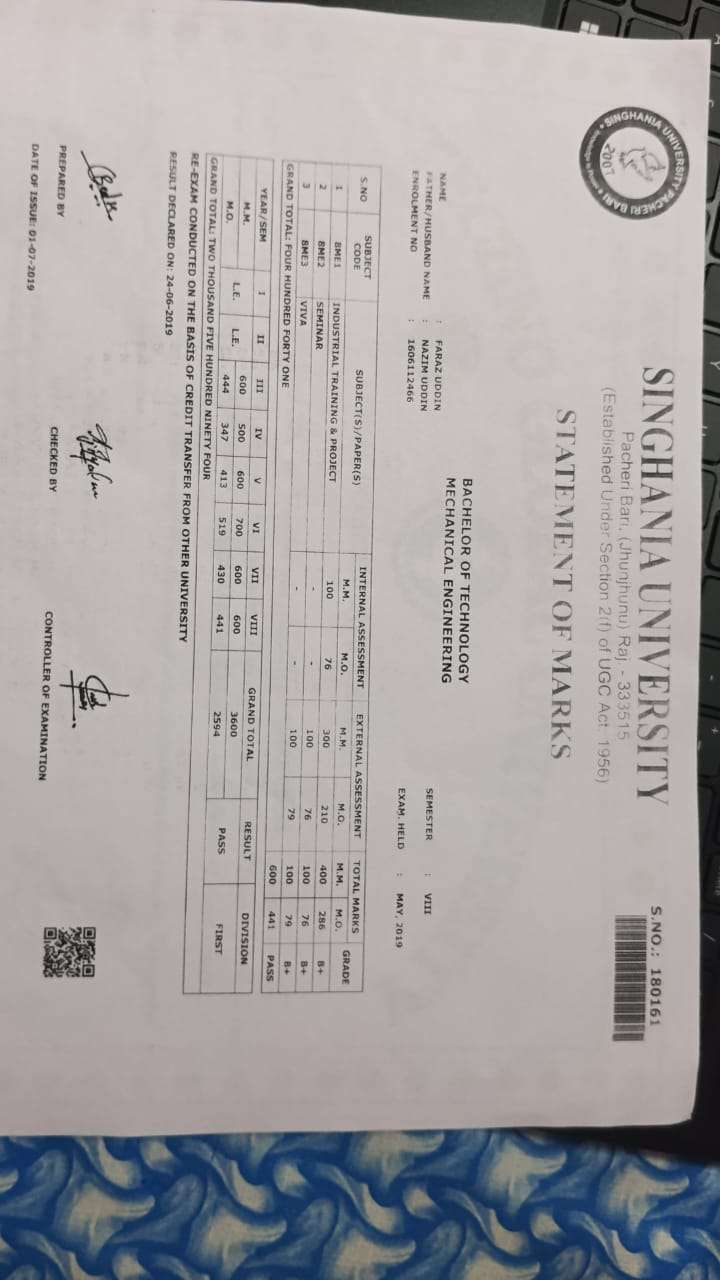 | Grade : A | Percentage : 83.00 % | MS. No. : 37318 | Date of Issue : 06-Jun-2024 |