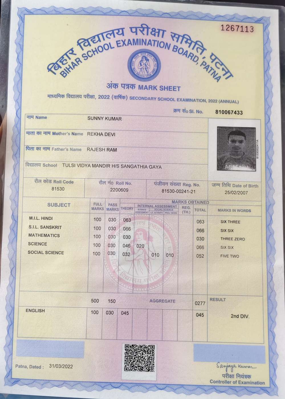 | Grade : A+ | Percentage : 85.00 % | MS. No. : 39808 | Date of Issue : 15-Sep-2025 |