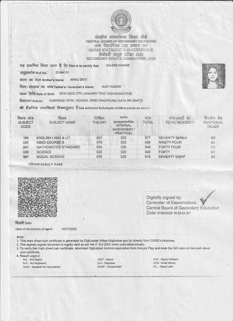 | Grade : A+ | Percentage : 85.00 % | MS. No. : 06010 | Date of Issue : 04-Jan-2021 |