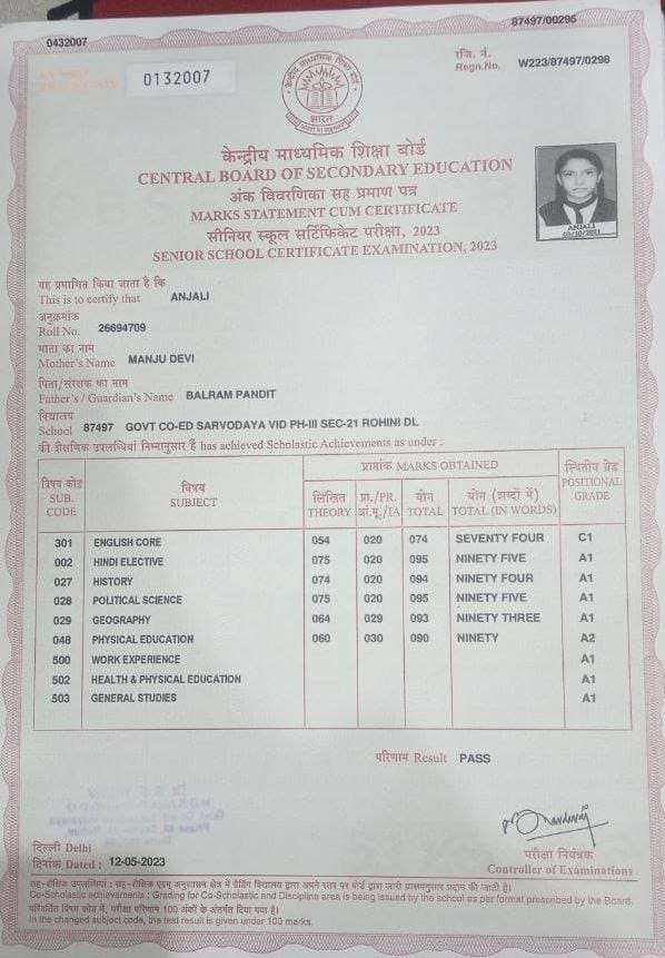 | Exam | Full Marks | Pass Marks | Marks Obtained |